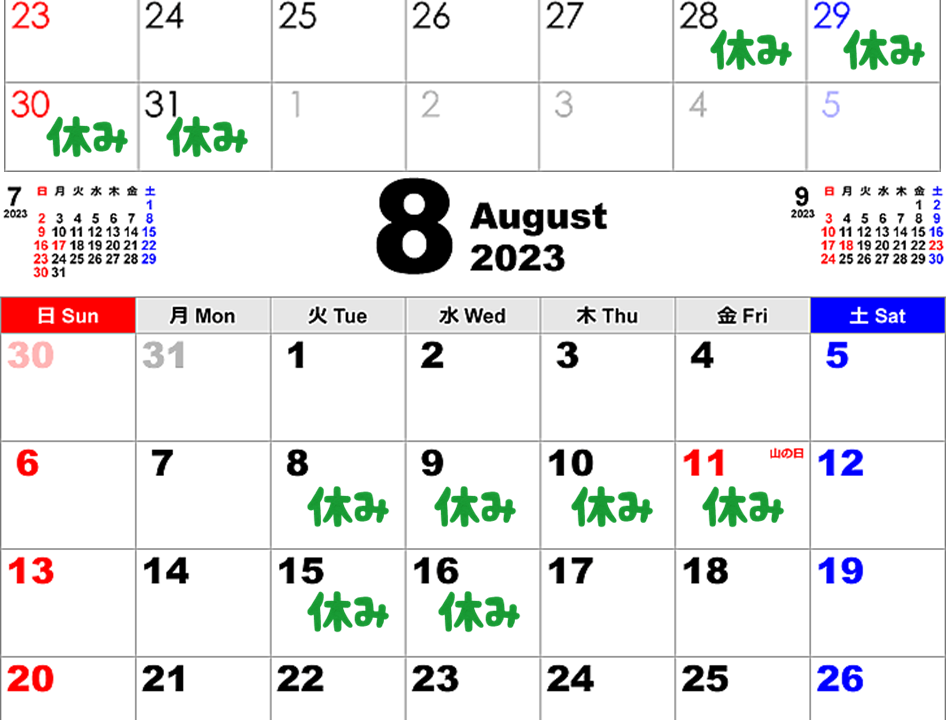 また、8月のスケジュールを掲載しておきます。